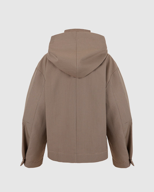 • BEIGE AND GREEN HOODED TRENCH COAT