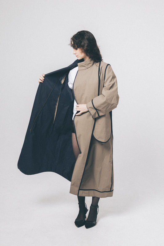 GABARDINA CON CAPUCHA BEIGE Y VERDE