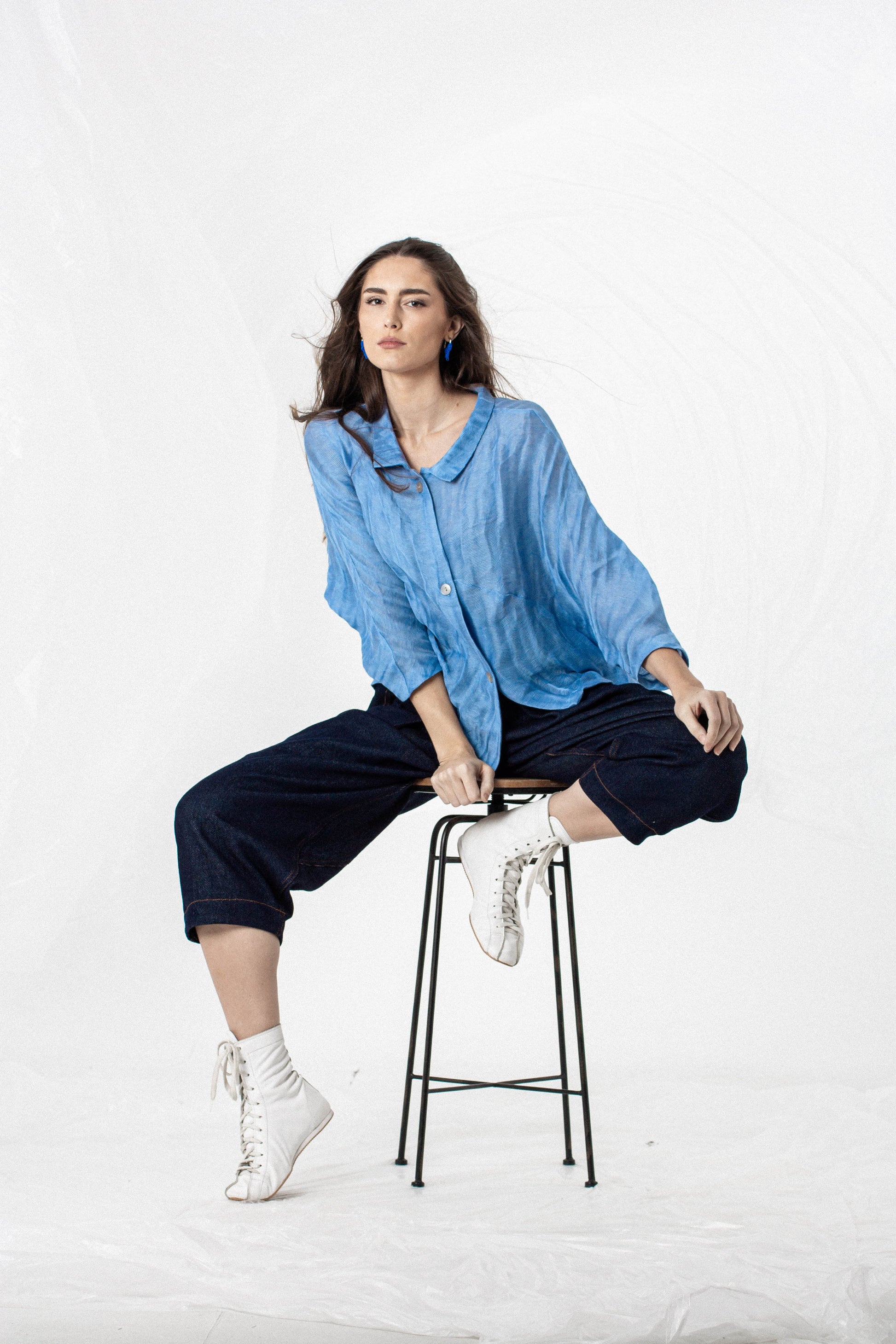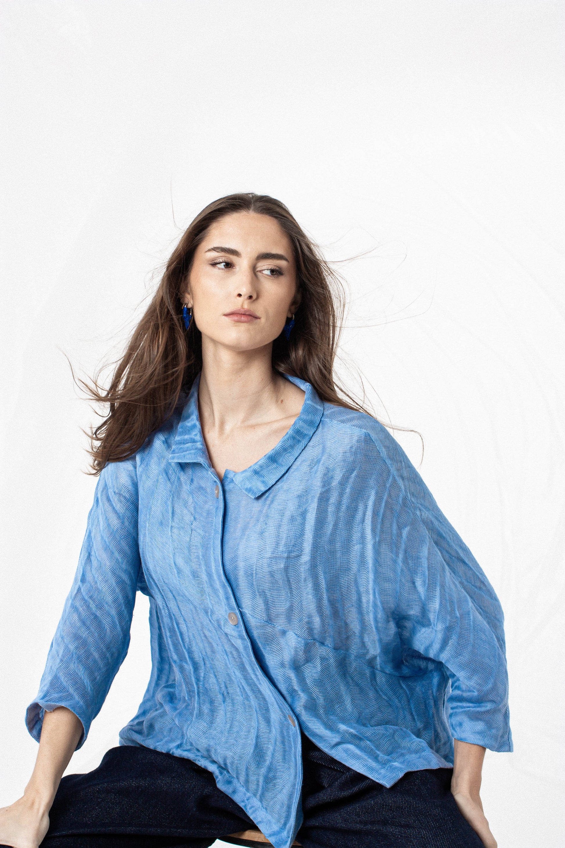 Your shirt has been made to accompany movement and reveal the process behind each piece. Wash the garment inside out, on a delicate cycle, and with mild detergent. Let it air-dry on a hanger to maintain its silhouette. Avoid tumble-drying, as it may alter its structure.