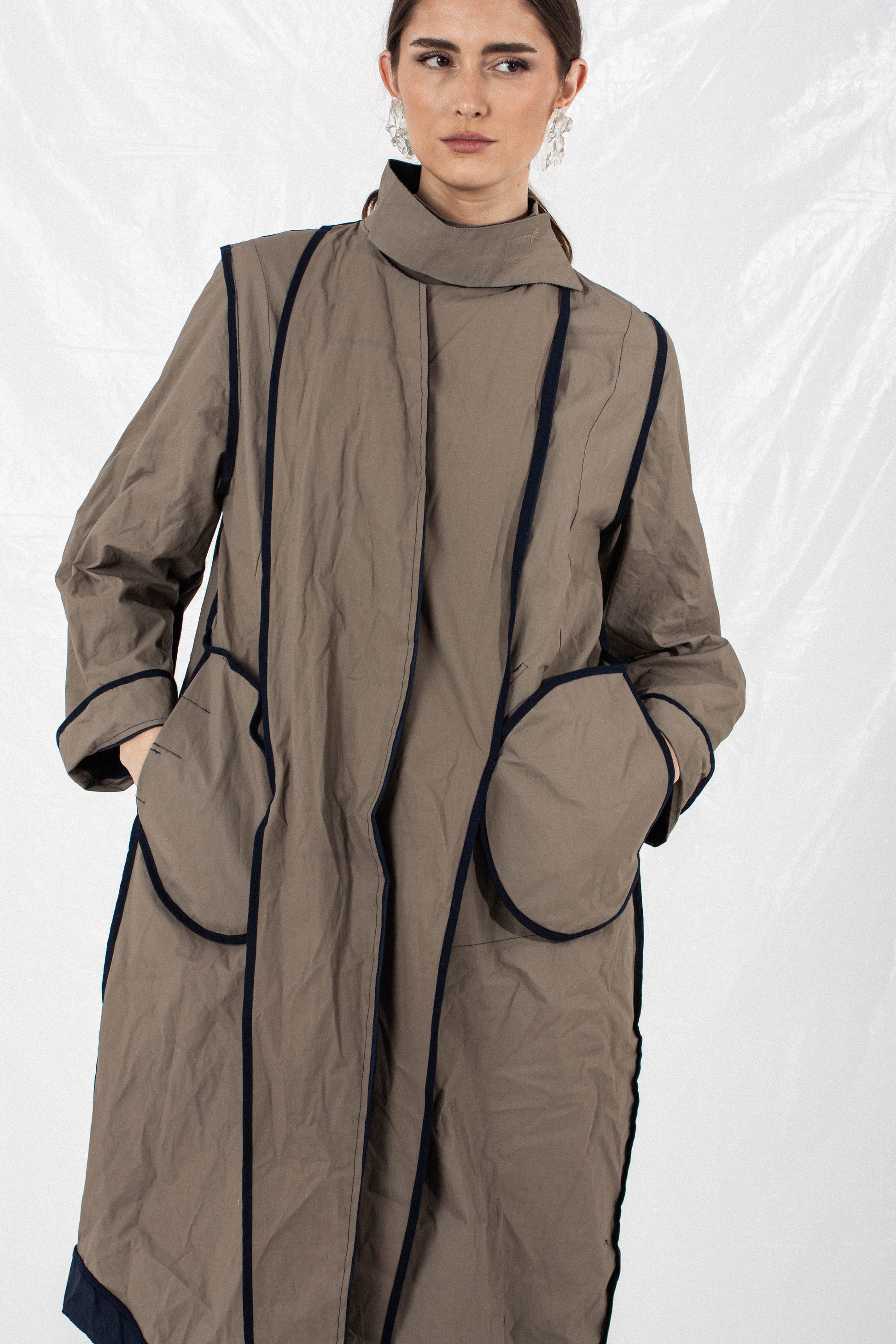 Combinando color azul y beige. Acabados de prendas magnéticos.